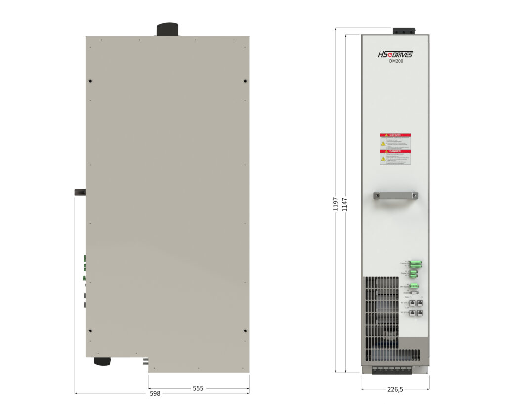 Die 200 A ? Powermodule beinhalten ein AFE (aktives Frontend) das in der Lage ist, mit einem einstellbaren cosPHI Energie aus dem Netz zu beziehen oder Energie in das Netz einzuspeisen. Die notwendigen Filterkomponenten (Sinusfilter und EMV Filter) sind im Gerät enthalten.