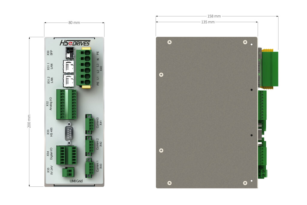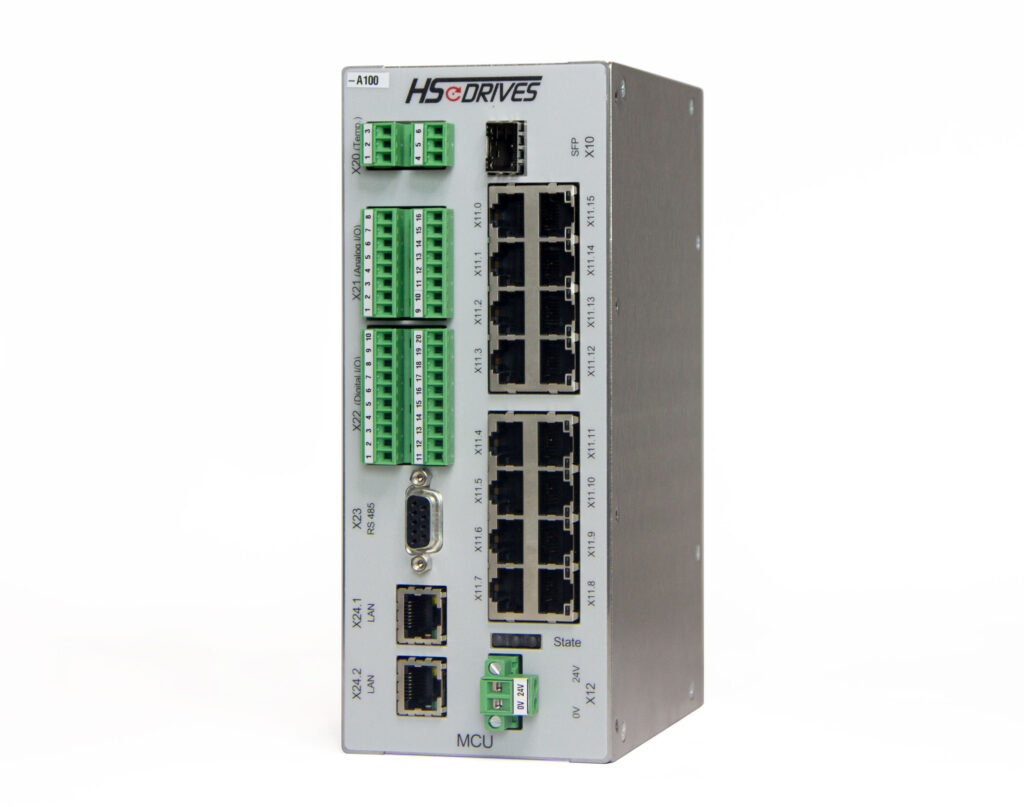Die Main Control Unit (MCU) ist die zentrale Intelligenz des Wechselrichtersystems HSI-Modular. Sie erlaubt den synchronisierten Betrieb von bis zu 12 Powermodulen. Diese werden über LAN Kabel mit der MCU verbunden. Die MCU erhält so innerhalb von wenigen Mikrosekunden alle Informationen aus den einzelnen Powermodulen, verarbeitet diese und gibt Stellgrößen an die einzelnen Powermodule (DM200) zurück.